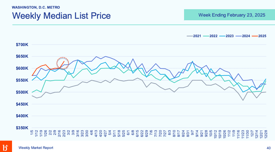 Bright MLS的数据表明,华盛顿特区的活跃房屋挂牌量相比去年同一周继续保持约25%的增长,并比一周前增加了4%——已经远高于过去三年的水平,随着与DOGE相关的裁员加剧,这一数据可能会进一步上升。
