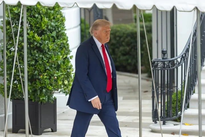6月15日,在美国华盛顿白宫,美国总统特朗普准备登机。新华社记者胡友松摄